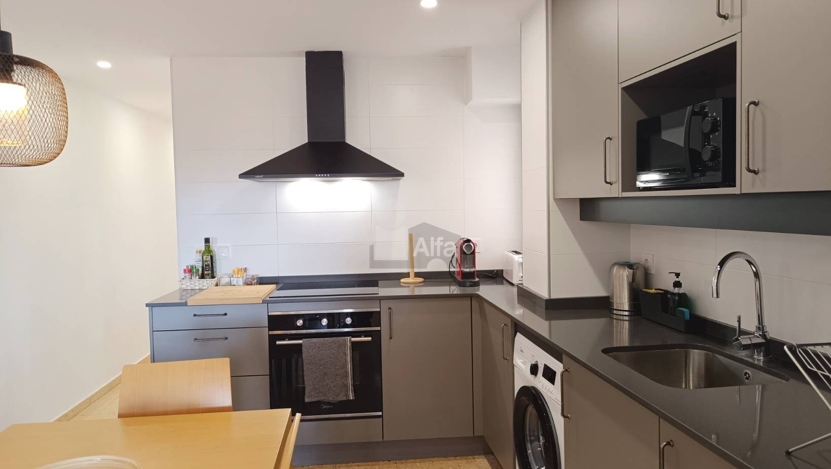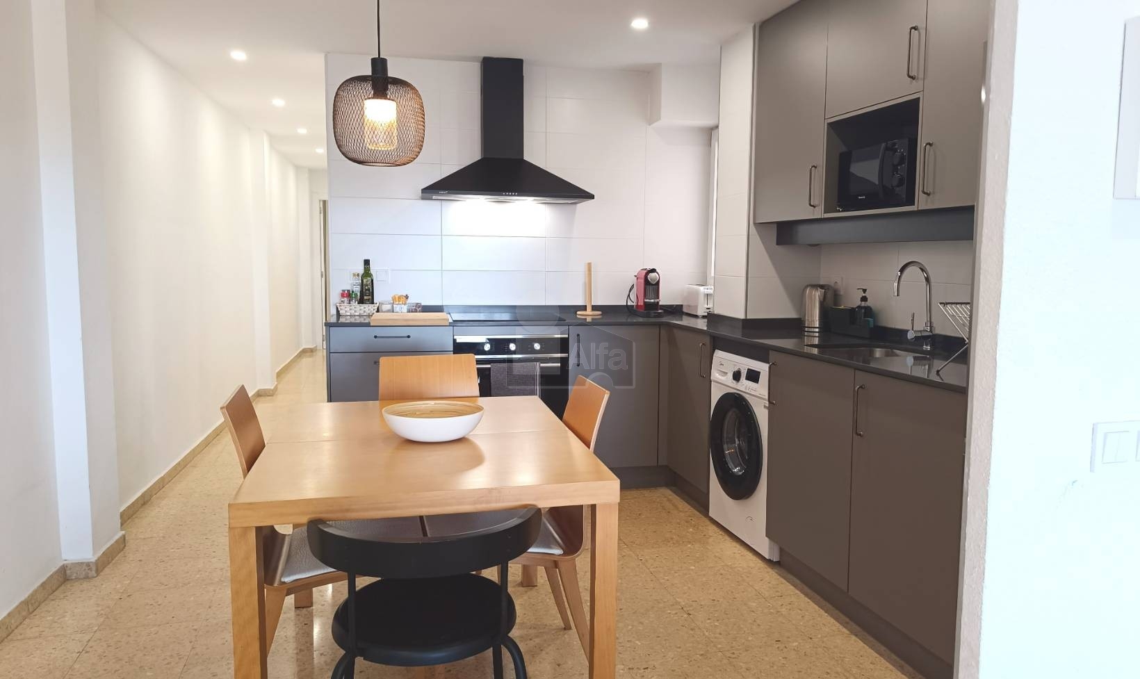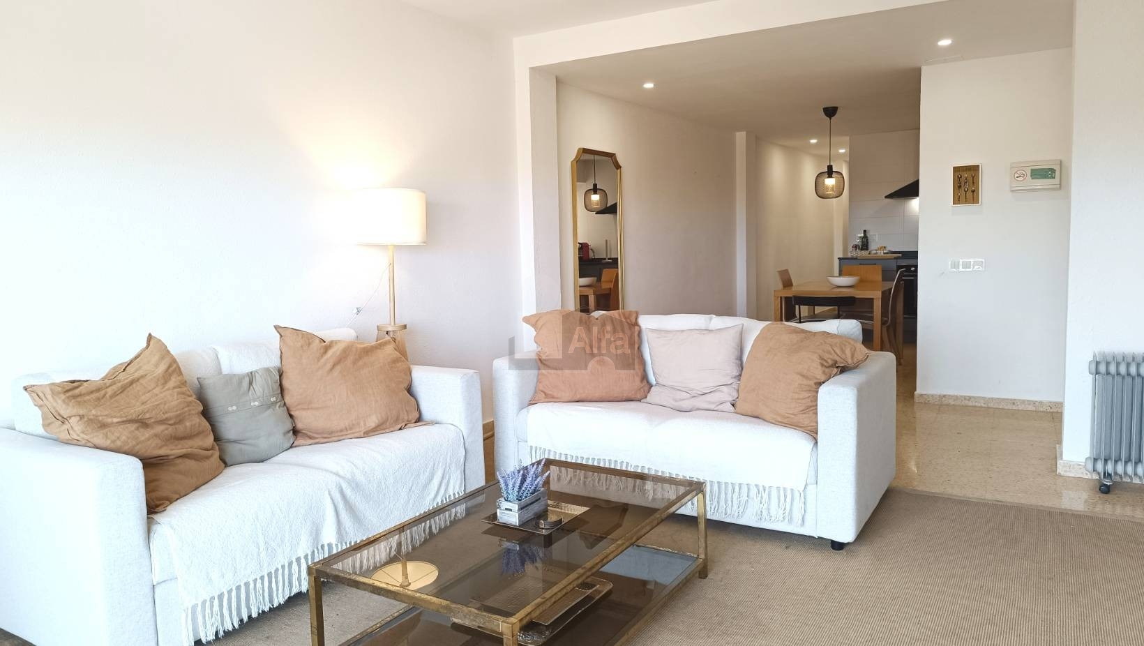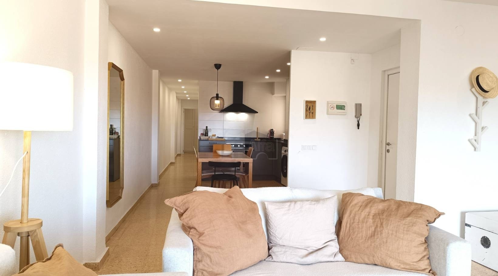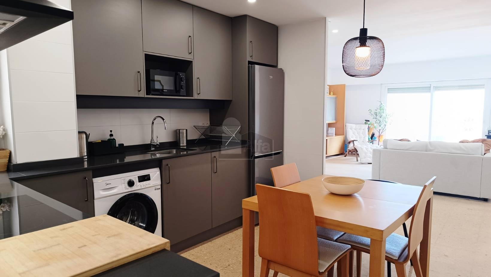 Al entrar, accedemos directamente a un amplio espacio abierto que integra salón, comedor y cocina en un único ambiente. Una distribución cómoda y muy bien aprovechada que aporta sensación de amplitud y facilita la vida diaria, creando un entorno perfecto tanto para el descanso como para compartir momentos en compañía.